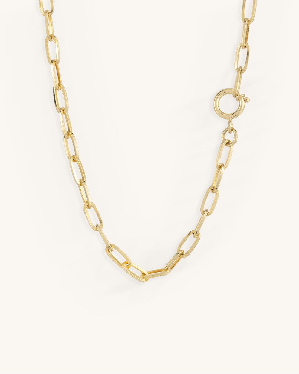 Tough chain necklace in gold-plated (925 Sterling Silver with a double layer of 14 karat Gold). Thickness: 4.5 mm.