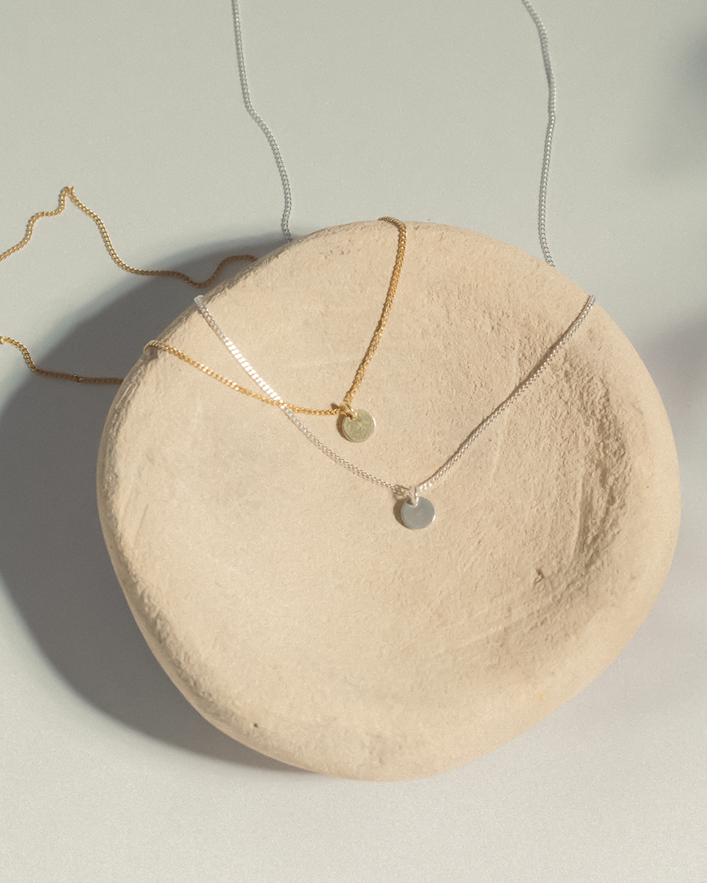 Classic curb chain necklace with a little coin in 925 Sterling Silver. Thickness: 1.2 mm. Coin S: 6 mm.